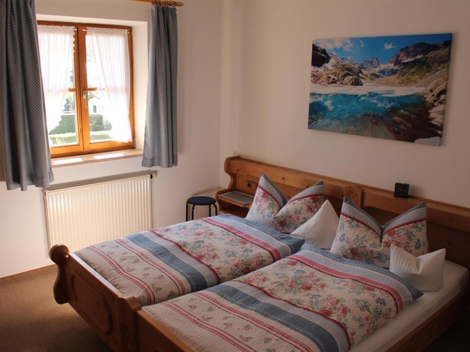 Gepflegtes Haus, in sonniger zentraler Lage mit freiem Gebirgsblick. 2 Ferienwohnungen, gemütlich im bayerischen Stil eingerichtet. Jede Ferienwohnung mit Südbalkon und 2 separaten Schlafzimmern. Parkplätze am Haus.