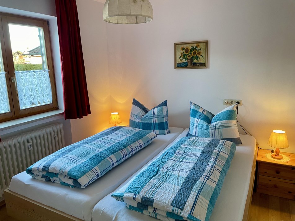 Well-kept house in bavarian style with mountain view, situated in a sunny and peaceful area at the southern edge of town. Big garden, parking place. Sports grounds, hiking trails and cross-country circiut only e few minutes walk away. No pets allowed.