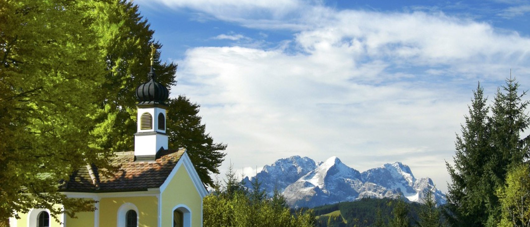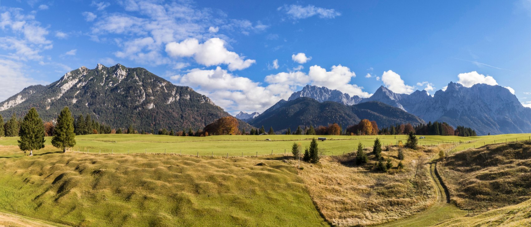 This popular hike in the Alpine World Karwendel leads from Krün to the Kapelle Maria Rast worth seeing through the unique Buckelwiesen. Along the way, hikers always enjoy the unforgettable panoramic view of the steep mountain peaks of the Karwendelgebirge.
