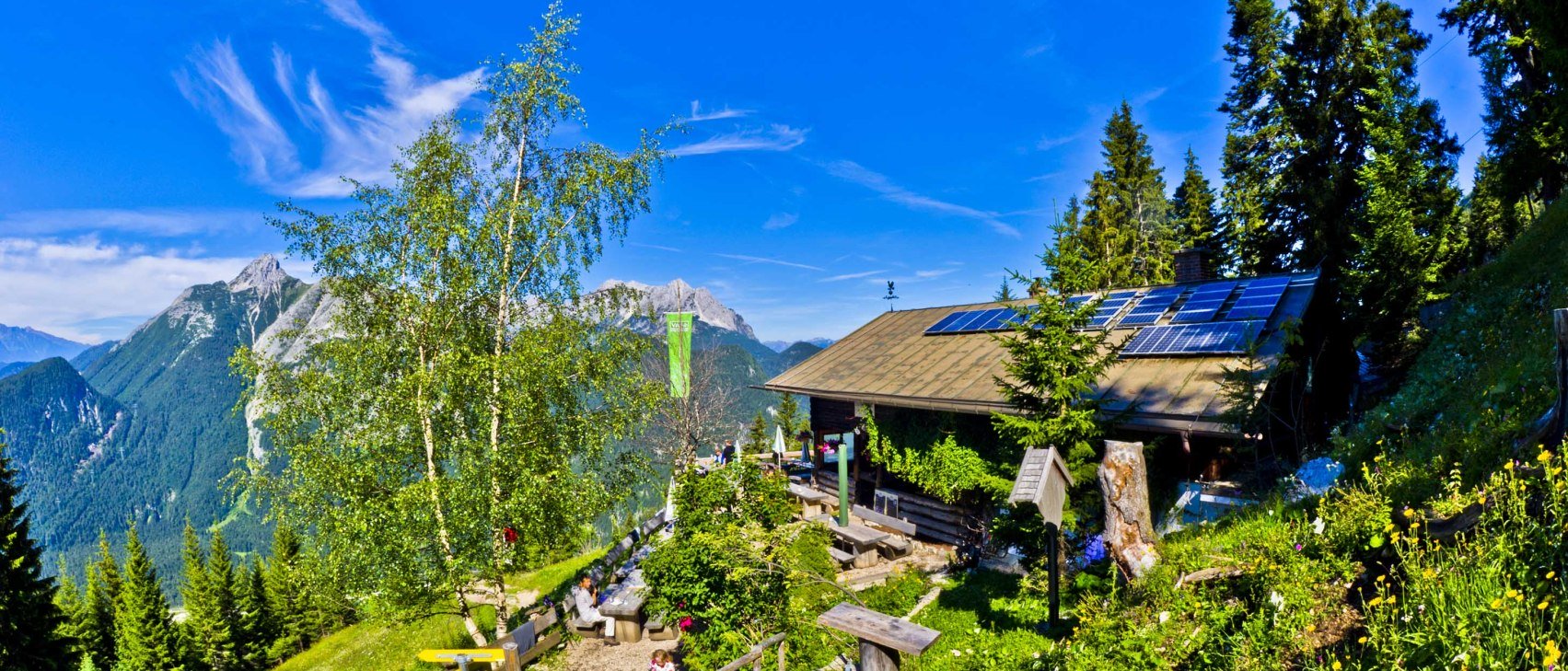 This mountain hike from Mittenwald to the Brunnsteinhütte lodge is a popular tour with vacationing guests, locals and families. The cozy Alpine Club lodge sits at 1.523 meters and offers a lovely view of the opposite facing Wetterstein massif.