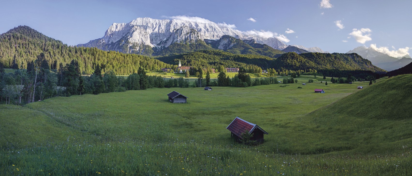 The starting point for this hike is the parking lot in front of the Hotel Kranzbach near Klais. Follow the signs toward the Elmauer Alm alpine hut along the edge of the meadows, uphill to the cozy Elmauer Alm.