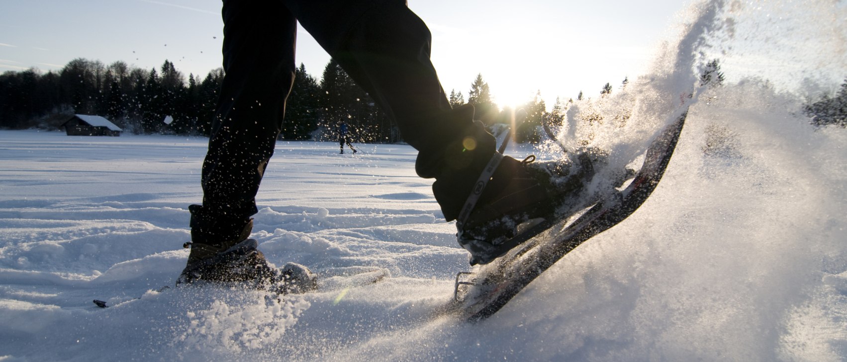 This varied snowshoe trek takes participants to Elmauer Alm (1,203 m), above Schloss Elmau, near Krün, and Wamberger Rücken to Eckbauer (1,250 m) in Garmisch-Partenkirchen. Trek starts near Schloss Kranzbach, where parking is available. The starting point can also be reached on foot from Klais in about one hour. The snowshoe trek first follows the hiking trail (860) through a small section of forest and then passes the cross-country skiing trail and continues up to Elmauer Alm, at about 1,203 meters, which is open in good weather. From there, follow the forest path toward Wamberg / Eckbauer until you reach a junction. The destination, Eckbauer, is about 15 minutes away from here. Take the