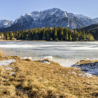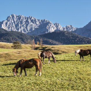 “Griabig” – truly cozy – is a horse-drawn carriage ride through the Alpine world of the Karwendel. Discover the mountain landscape around Mittenwald, Krün, and Wallgau on a carriage tour to destinations of your choice. Classic excursion spots include Lake Lautersee, the Gröblalm alpine inn, or the idyllic “Maria Rast” chapel in the famous rolling meadow landscape “Buckelwiesen” between Mittenwald and Krün.