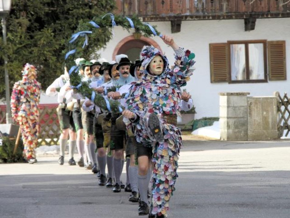 General infosAccording to an old custom, the men from Wallgau with their wooden masks pull through the streets and drive out the winter. Beginning 12.00 clock
