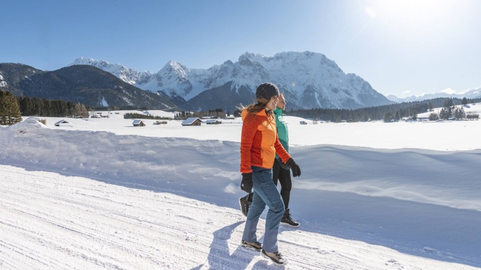around the Schmalensee or plan a hike in the area - glistening water against the backdrop of the Karwendel and Wetterstein mountains make for a fantastic view of the lake. The lake is also worth a visit in winter. From Mittenwald, a short hike past the Gröbl-Alm takes you to the Schmalensee. From Krün